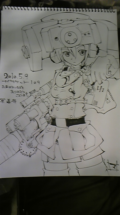 ガタケット109に参加された皆様、お疲れ様でした。 今回はミリタリーコスが増えてる! うれしいですね♪ と、いうわけで一枚♪ しかし、肝心の新刊はありませんでしたorz 7月のガタケには何か出したいですね 我がサークルの絵師マ式くんが描いたスケブ用イラスト 遊びに来ていただいた皆様、ありがとうございました。 また、7月のガタケでお会いしましょう! |