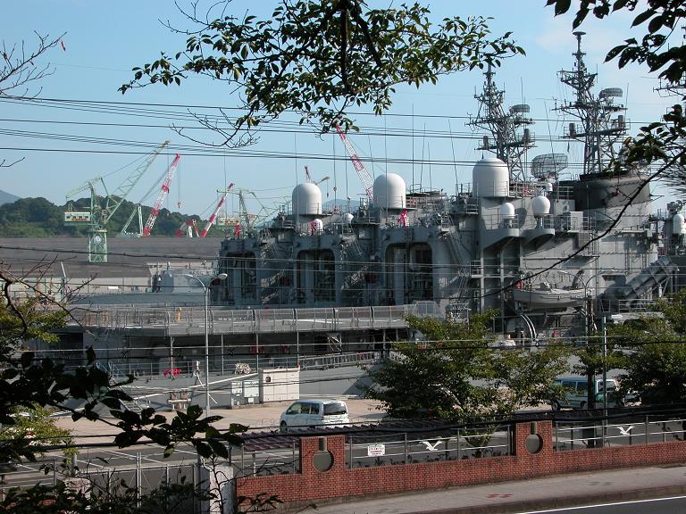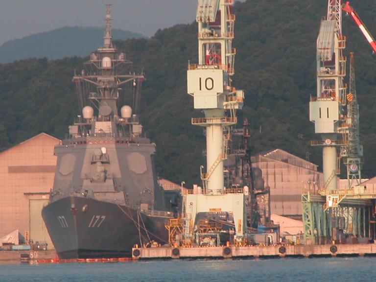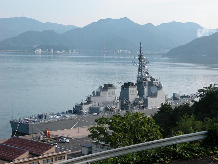 離れた所から「しもきた」の艦尾を撮影